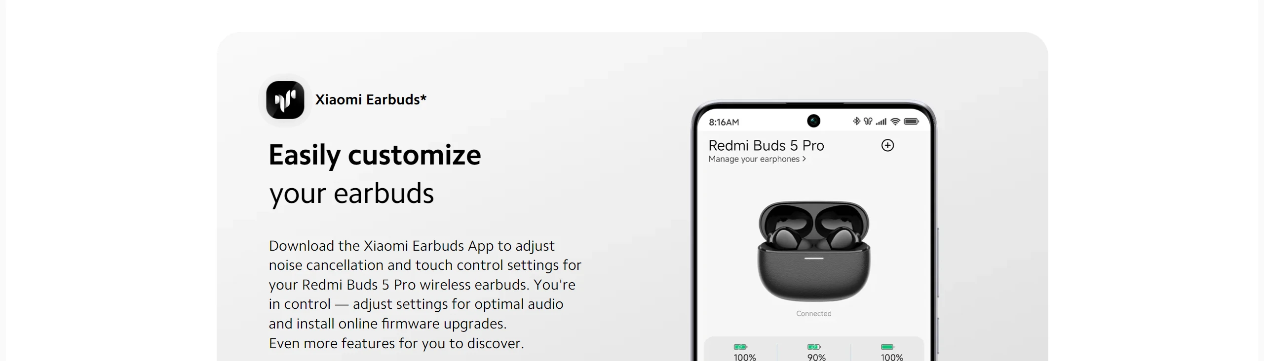 *Gesture settings and in-ear detection are only available on the Xiaomi Earbuds App.
