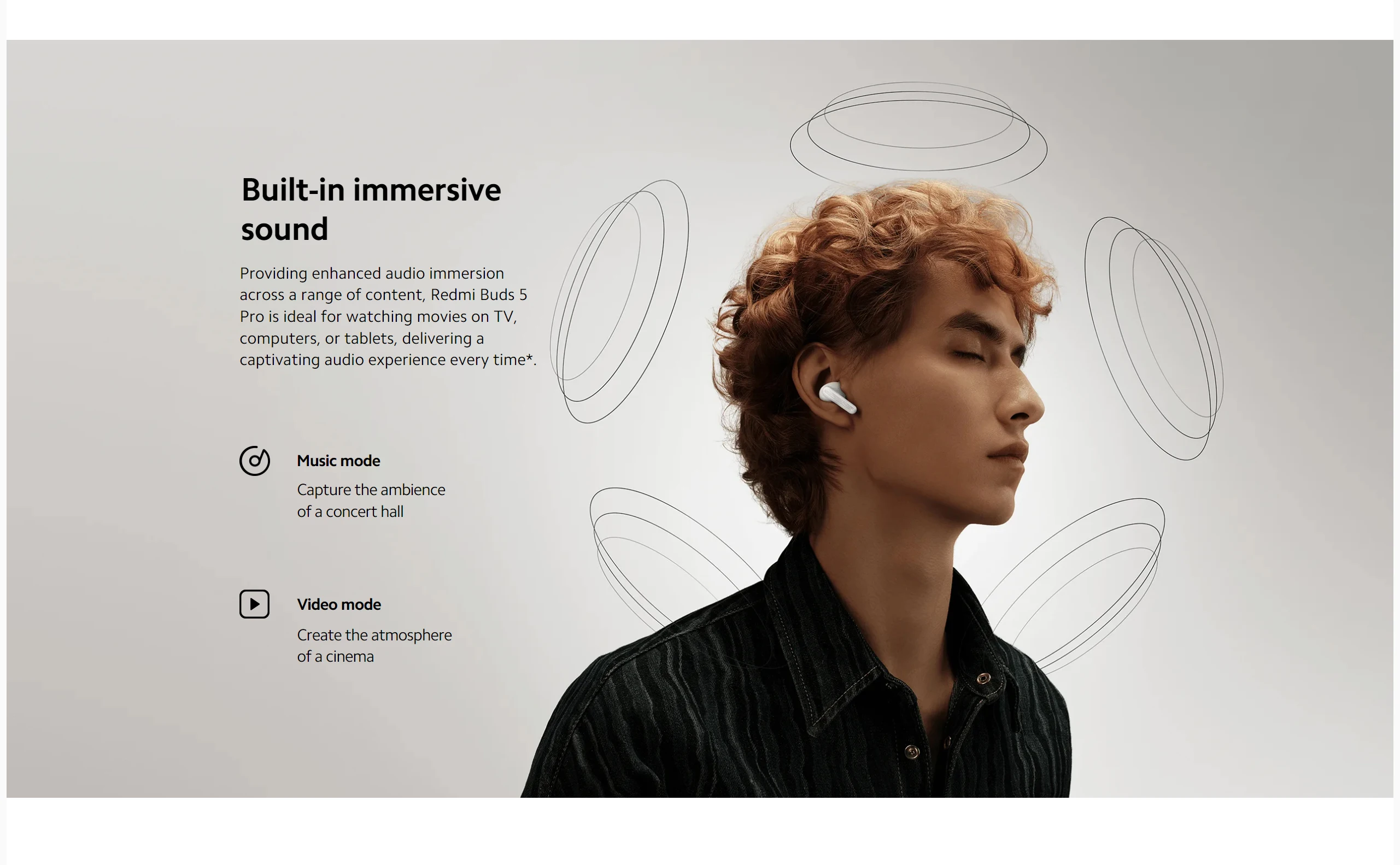 *Immersive sound is applicable to music and videos in apps that support this function. Immersive sound is switched off as default, settings available only on Xiaomi Earbuds app. The use of LDAC audio codec and immersive sound are mutually exclusive.