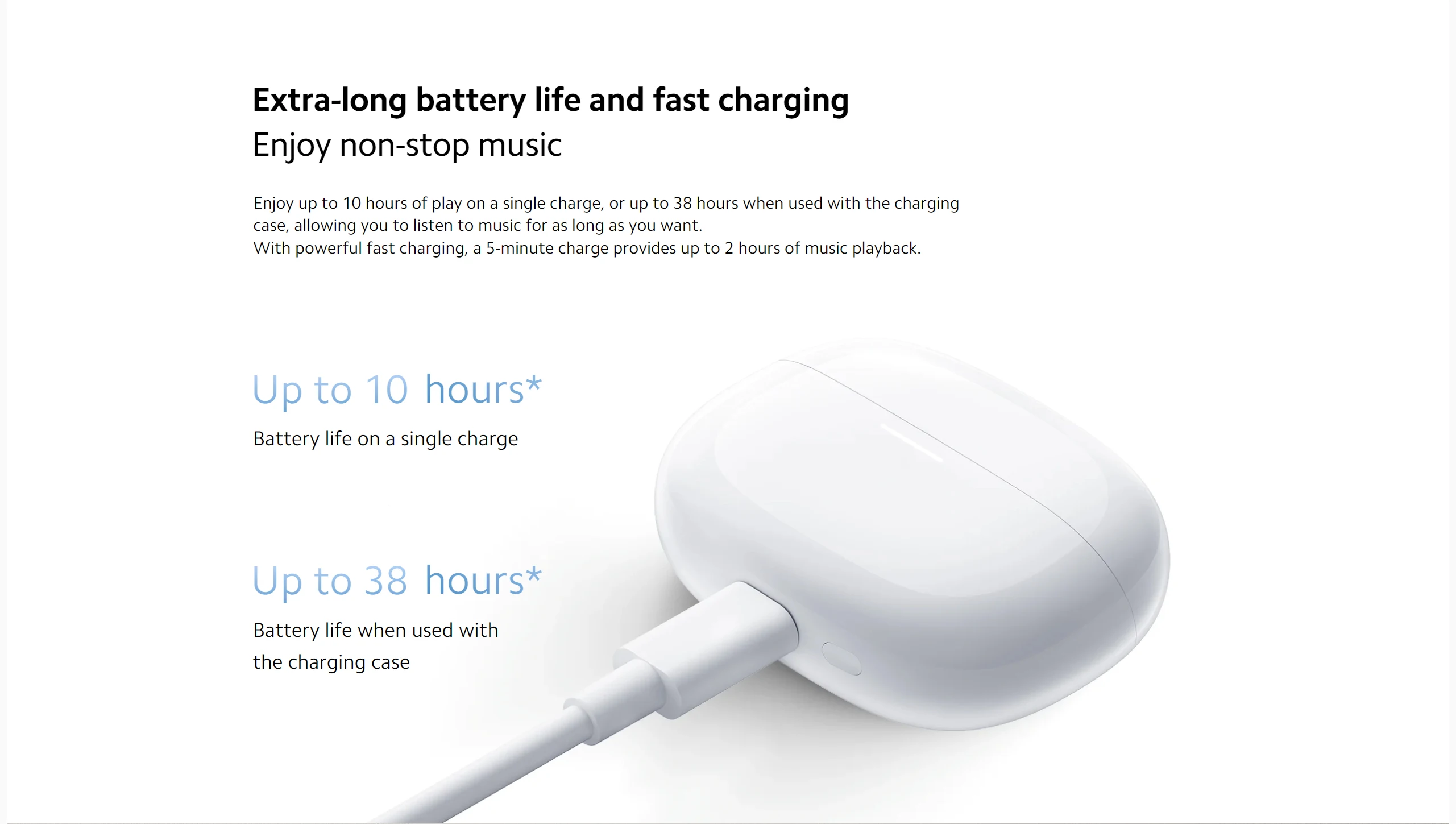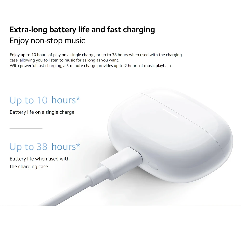 *5 minutes fast charging requires the charging case battery to be at 20% or above.